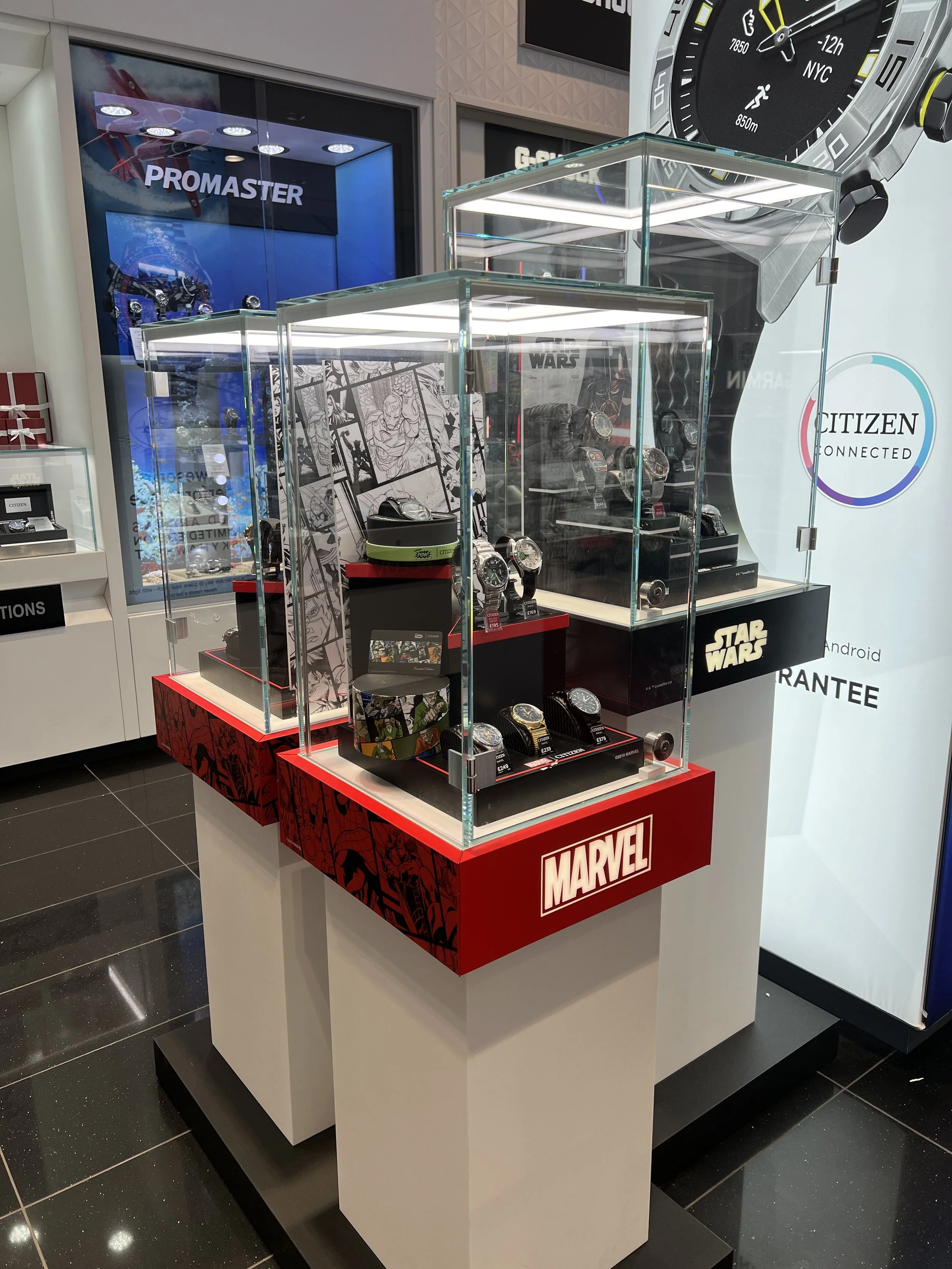 Redd Retail Group had been approached to design, manufacture and install unique shop in shop fixtures and showcase counters for all watch brands on sale in H.Samuels, White City store. Along with the request, we were approached by Citizen to design their first UK boutique for the group brands, the end result was an absolute success for all, the presentation of the brands with the overall look and finish of the store had been raised to another level. The pictures show the creativity of the project and truly speak for themselves.